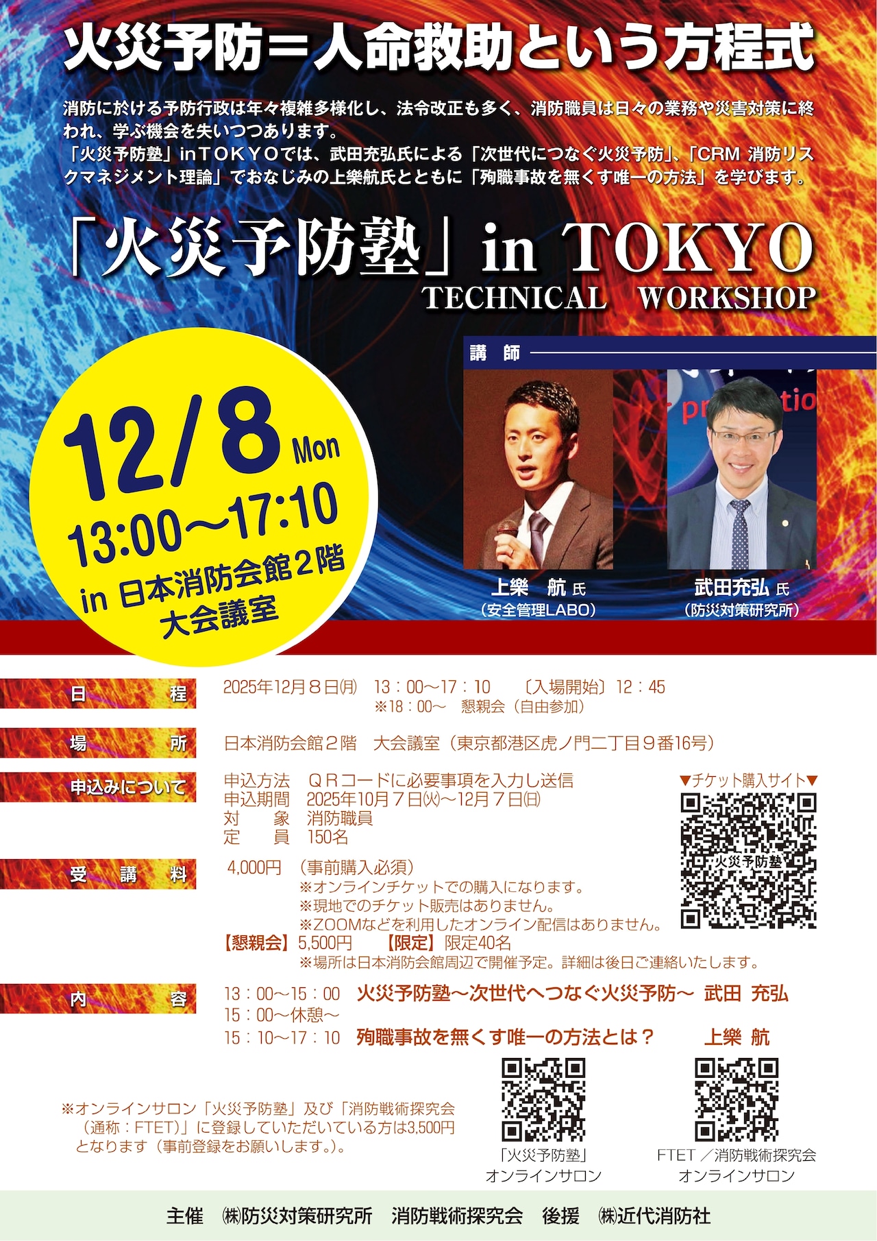 10/7発売開始!!オンラインチケット火災予防塾inTOKYO